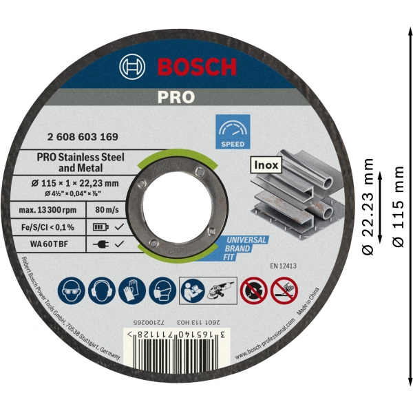 El disco de corte PRO para acero inoxidable y metal utiliza grano de óxido de aluminio de primera calidad para garantizar cortes rápidos y eficientes en acero inoxidable y metal. Combinamos el grano con materiales de relleno funcionales y los incorporamos en una matriz de resina fenólica para mayor resistencia, resistencia al calor y un rendimiento estable. Reforzamos el disco con fibra de vidrio de alta calidad para garantizar su uso más seguro. Además, está fabricado sin hierro. Por lo tanto, no tendrá que preocuparse por la oxidación en la pieza de trabajo si solo corta acero inoxidable.