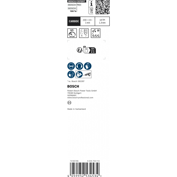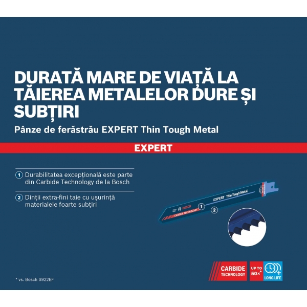 Hasta 50 veces más durabilidad que una hoja de sierra Bosch S922EF en materiales duros