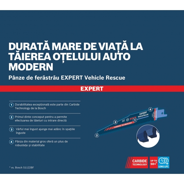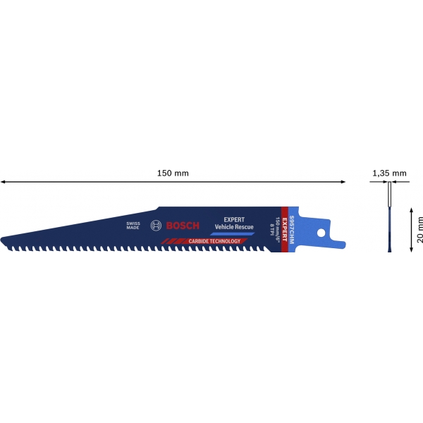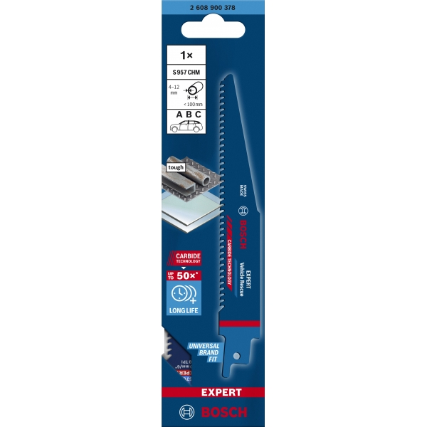 Fabricada con tecnología de carburo de Bosch, la hoja de sierra alternativa Bosch EXPERT Vehicle Rescue corta de forma rápida y segura vehículos modernos y ayuda a salvar vidas.
