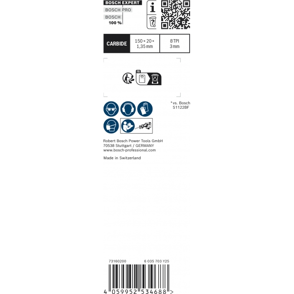 Hasta 50 veces más durabilidad que una hoja de sierra Bosch S1122BF en materiales duros
