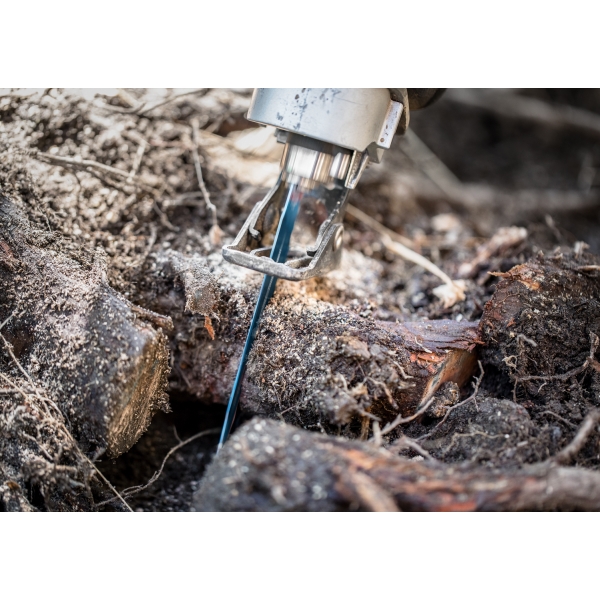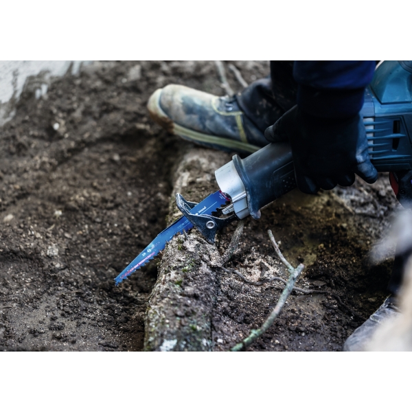 Paisajistas, carpinteros y constructores, en particular, apreciarán la hoja de sierra sable Bosch EXPERT Tough Wood. Es tan resistente y duradera que permite cortar raíces para talar árboles y setos sin preocuparse de que la tierra y las piedras se enreden.