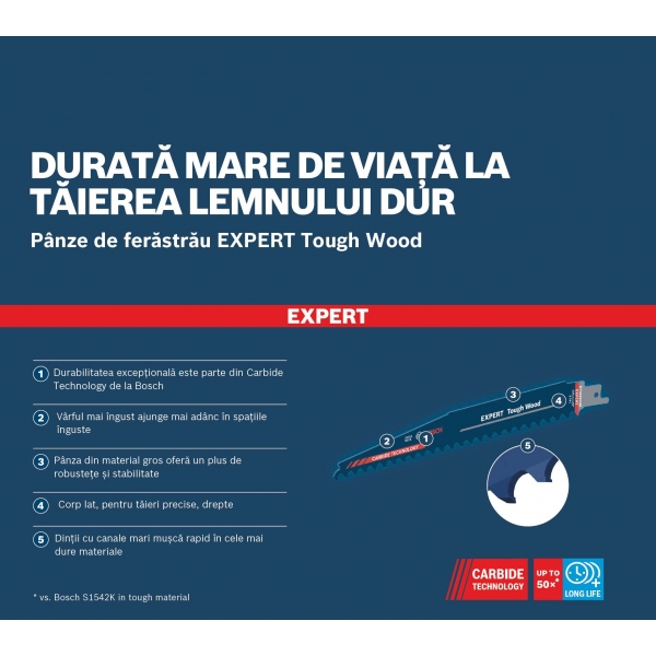 Hasta 50 veces más durabilidad que una hoja de sierra Bosch S1542K en materiales duros