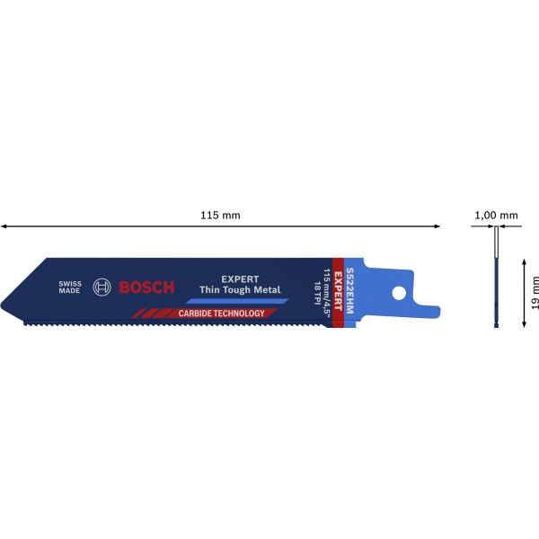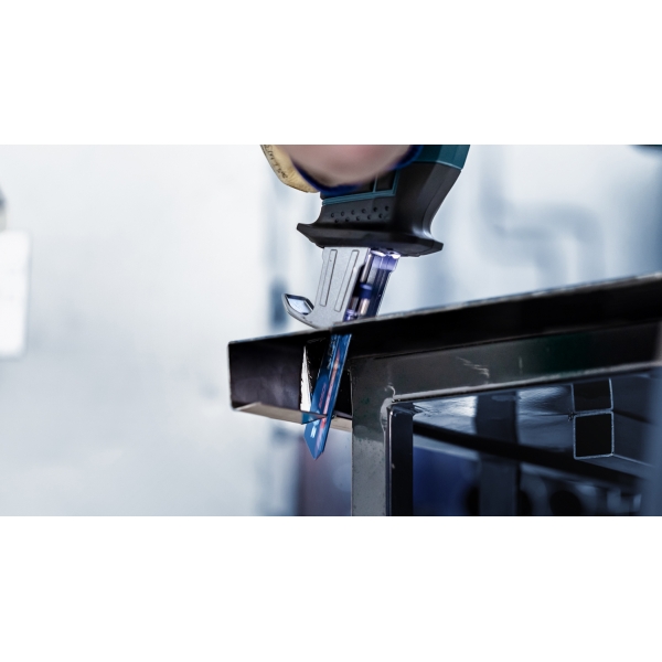EXPERT Thin Tough Metal representa un avance en el desarrollo de hojas de sierra de sable, ya que integra el metal más duro en un patrón de dientes optimizado para chapas y tubos de acero. Los dientes están rectificados con una geometría fina, lo que permite un corte sin problemas incluso en chapas delgadas de acero inoxidable.