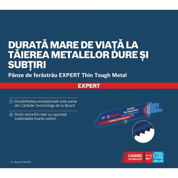 Hasta 50 veces más durabilidad que una hoja de sierra Bosch S922EF en materiales duros