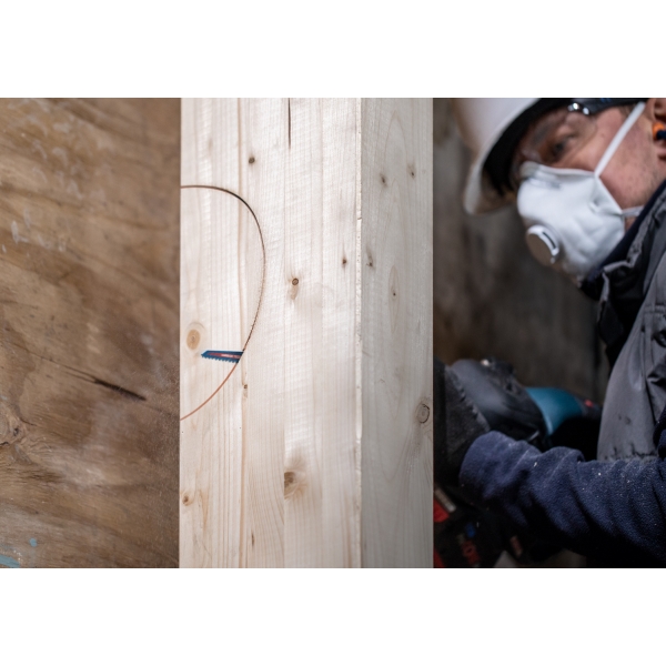 A veces, durante trabajos de renovación e instalación, resulta útil poder realizar cortes curvos con una sierra de sable. EXPERT Madera con Metal S715LHM combina esta flexibilidad con las cualidades de los carburos superduros.