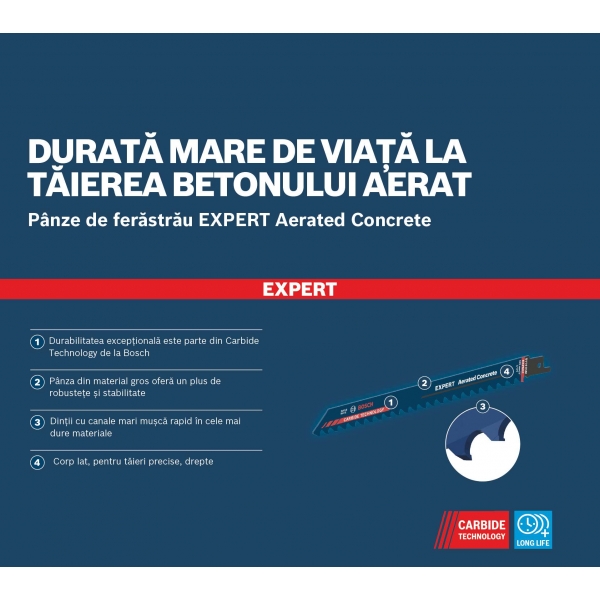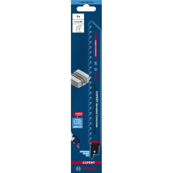 La hoja de sierra de sable Bosch EXPERT para hormigón celular es una hoja especializada para bloques de hormigón celular. La tecnología de carburo de Bosch permite que sus dientes corten estos materiales día tras día.