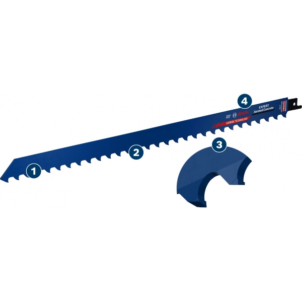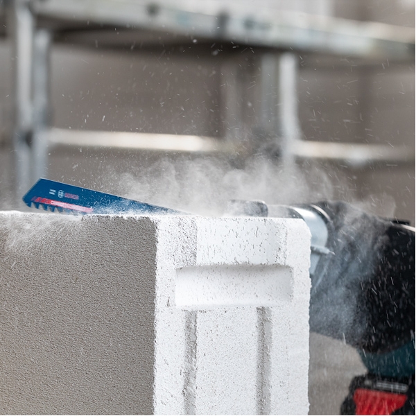 La hoja de sierra de sable EXPERT Aerated Concrete de Bosch es una hoja especializada para bloques de hormigón aireado.