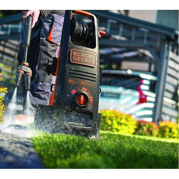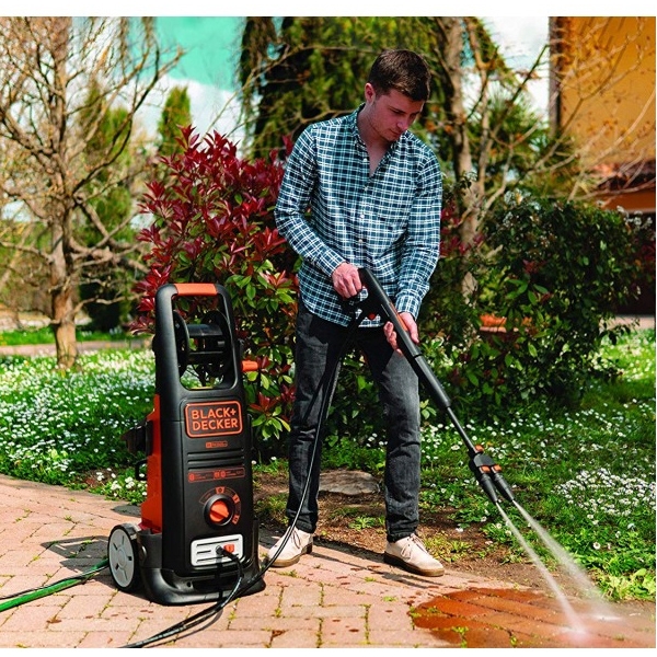 Tiene una estructura ligera y compacta, completa con ruedas de transporte, asa telescópica, soporte de lanza y un compartimento de almacenamiento de boquilla. Además, la lavadora a presión con 2 motores Black + Decker - BXPW2500DTS está equipada con un tambor para manguera de alta presión.