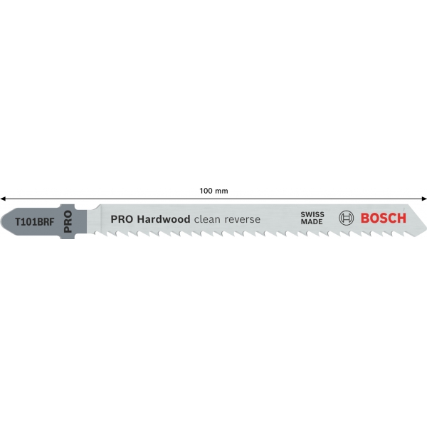 La mayoría de las hojas de sierra de calar cortan en el movimiento ascendente, y el modelo duradero PRO Hardwood Clean Reverse T101BRF ofrece una solución simple para los profesionales que desean ver la parte superior de su pieza de trabajo mientras obtienen los cortes limpios que necesitan: tiene un diseño de dientes inversos y corta en el movimiento descendente.
