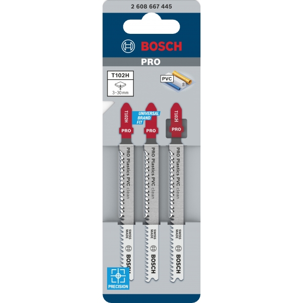 Bosch - T 102 H - Juego de hojas de sierra pendular, varilla con un umbral de sujeción (T), 100 mm, plástico, corte recto y fino, 3 piezas