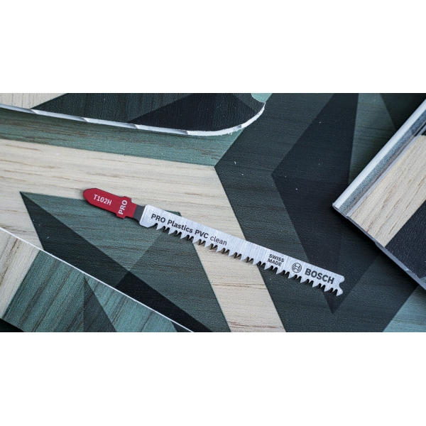 La hoja de sierra de calar PRO Plastics T102H para PVC y PMMA es una excelente opción para artesanos que necesitan cortar materiales termoplásticos. La hemos fabricado con acero de alto carbono (HCS) y le hemos dado un cuerpo cónico y dientes finos afilados por fricción para obtener cortes limpios sin astillado ni fusión continua del material. Úsela para cortar láminas, tubos y perfiles de PVC (cloruro de polivinilo), PMMA (metacrilato de polimetilo) o acrílico de hasta 30 mm de espesor.