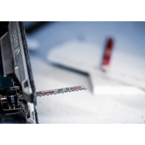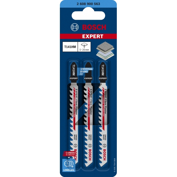 La excepcional calidad y durabilidad de la hoja de sierra de calar Bosch EXPERT para yeso de fibra se basa en la tecnología de carburo de Bosch. Dientes afilados individualmente, fabricados con el metal más duro, se sueldan a la hoja mediante técnicas de fabricación avanzadas.