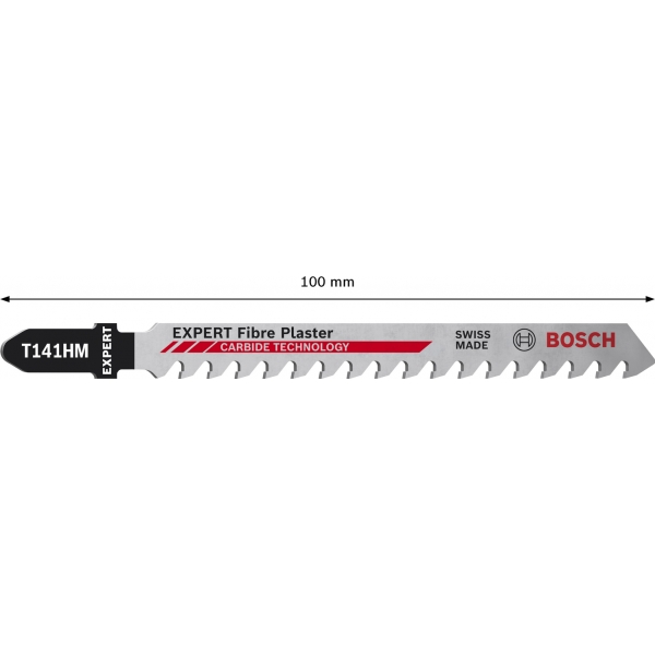 La hoja de sierra de calar Bosch EXPERT para yeso de fibra está diseñada para realizar cortes repetidos en los materiales más abrasivos. Es la opción perfecta para profesionales que realizan trabajos difíciles, como la instalación de placas de yeso, y está disponible en dos longitudes: la hoja de sierra T141HM, para un control máximo, y la T341HM, con una longitud mayor para un mejor alcance.
