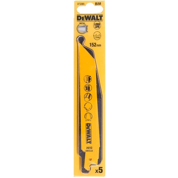 DeWalt - S611DF - Juego de hojas de sierra de sable, bimetálico, 152 mm, 6 dientes / pulgada, diente estándar, 5 piezas