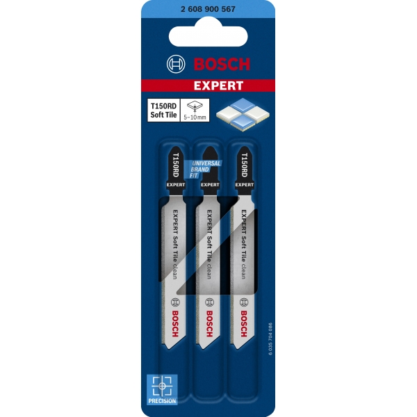 Si alguna vez te has preguntado cómo hacer cortes suaves y precisos en baldosas cerámicas con una amoladora angular, ahora tienes la respuesta. La hoja de sierra de calar Bosch EXPERT Soft Tile clean T150RD garantiza un corte sin astillas con la máxima calidad de fabricación. No es apta para cortar baldosas duras.