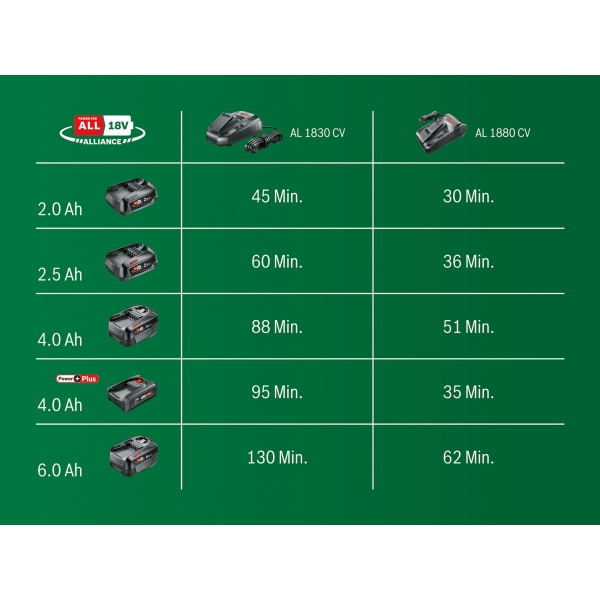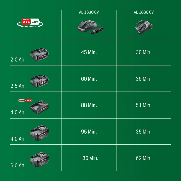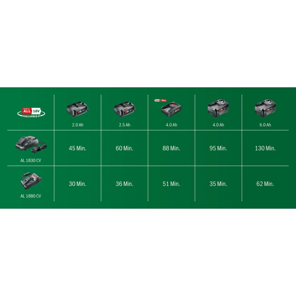 Power4All? es el sistema con tecnología de batería de iones de litio para toda la familia de herramientas eléctricas de Bosch en el hogar y el jardín: el cargador se puede combinar de forma flexible con todas las baterías de 14,4 V/18 V de Bosch.