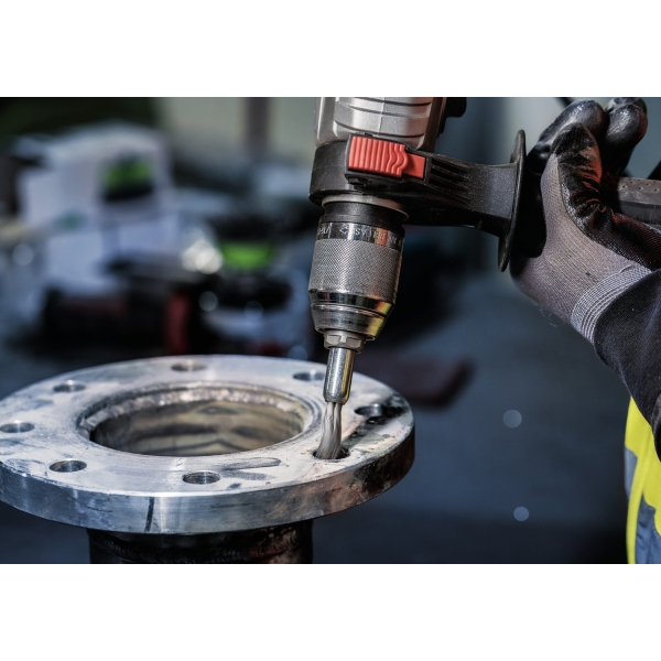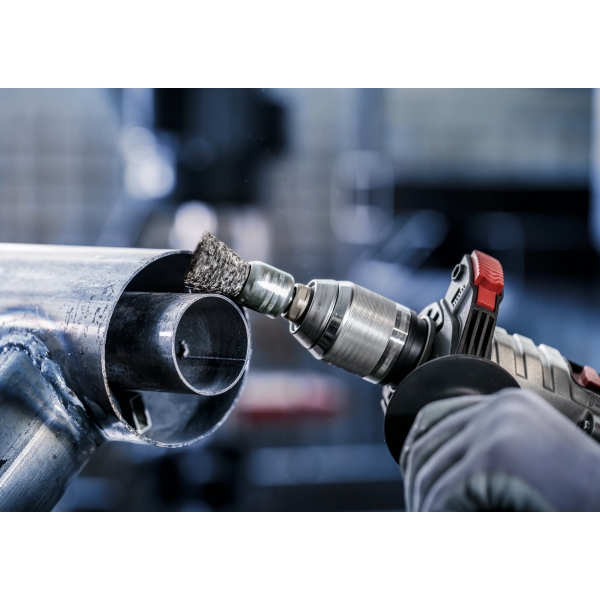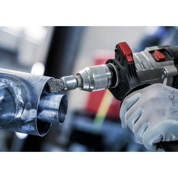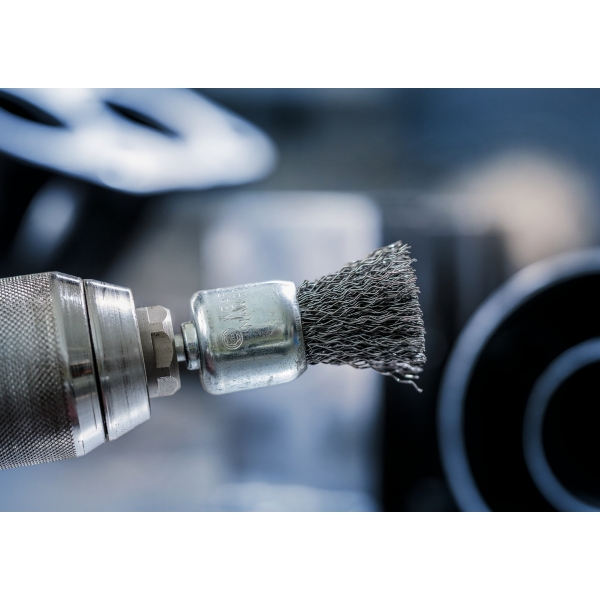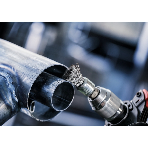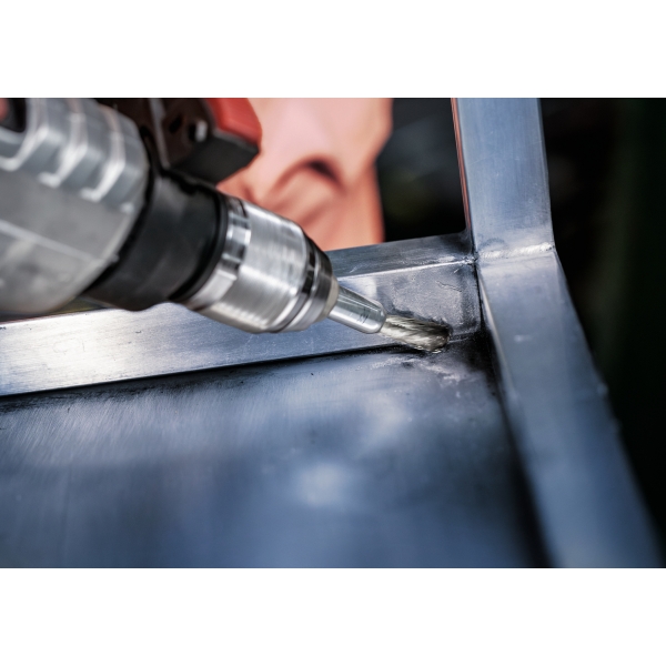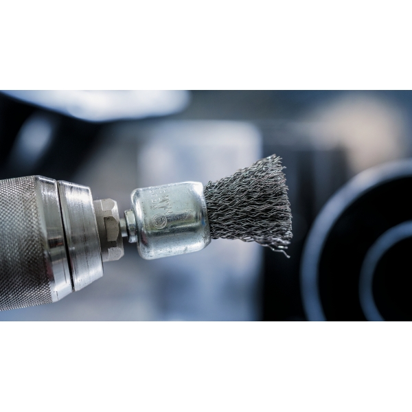 El cepillo PRO Metal Clean End es un accesorio duradero que querrás tener a mano en tu taller de metalistería. Lo hemos equipado con alambre ondulado de primera calidad para garantizar que te ayude con las tareas de limpieza más ligeras. Gracias a su diseño compacto, puedes limpiar superficies pequeñas, esquinas, perfiles y tuberías de acero.