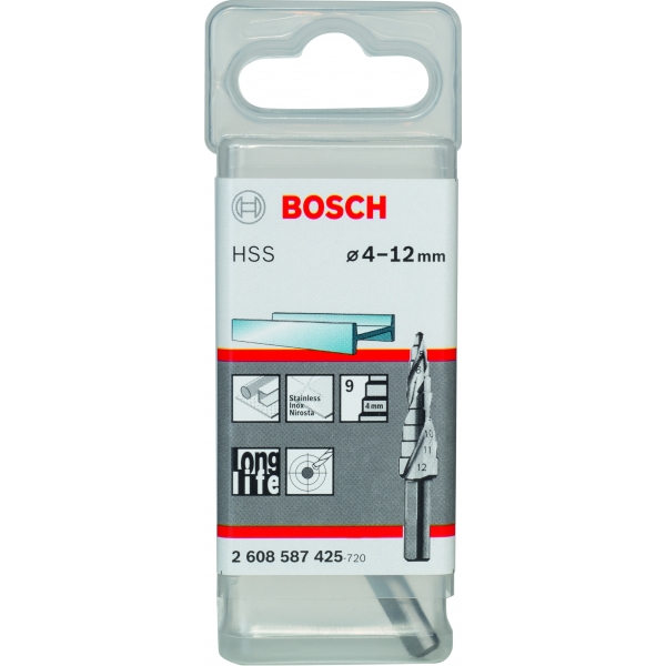 Bosch - 2608597525 - Broca en escalones, 4-12 mm, 9 pasos, HSS-TIN