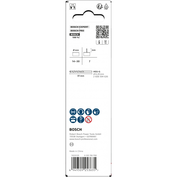Bosch - EXPERT Power Change Plus - Adaptador de coronamultimaterial, 14-210 mm, vástago hexagonal, broca de centrado incluido
