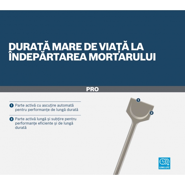 El PRO SDS max-5C es un cincel ancho y duradero para trabajos de demolición y renovación. Cuenta con un filo autoafilable para un rendimiento duradero. Úselo con su martillo perforador SDS siempre que necesite eliminar yeso, mortero, hormigón crudo y residuos de hormigón de suelos, así como de paredes de hormigón y ladrillo.