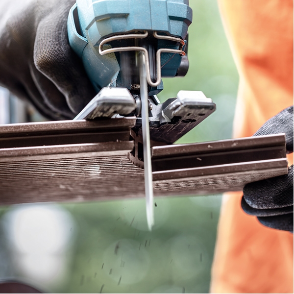 La geometría de los dientes está optimizada para cortar materiales especializados de alta tecnología, como compuestos de madera y plástico (WPC) y materiales de superficie sólida.