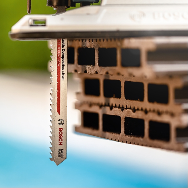 Estas cualidades hacen de la hoja de sierra vertical Bosch EXPERT Plastic Composites Clean la elección perfecta para la construcción de cocinas y baños y para trabajos de WPC.