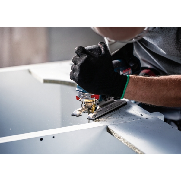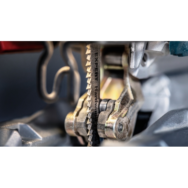 Entre instaladores y carpinteros, siempre ha sido un arte asegurarse de que el lado limpio del corte de la sierra de calar quede en la cara visible de la pieza. A veces se puede girar la pieza, otras veces se puede sostener la sierra de calar boca abajo. También se puede usar la hoja de sierra EXPERT "Hardwood 2-side clean", que proporciona un corte perfecto y sin astillas en ambos lados gracias a sus dientes opuestos.