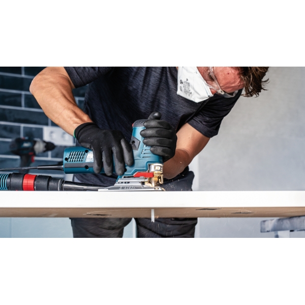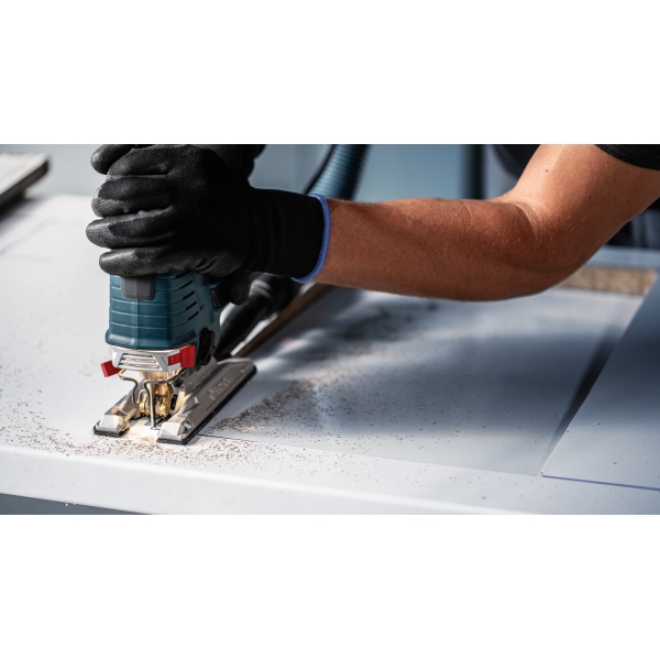 Entre instaladores y carpinteros, siempre ha sido un arte asegurarse de que el lado limpio del corte de la sierra de calar quede en la cara visible de la pieza. A veces se puede girar la pieza, otras veces se puede sostener la sierra de calar boca abajo. También se puede usar la hoja de sierra EXPERT "Hardwood 2-side clean", que proporciona un corte perfecto y sin astillas en ambos lados gracias a sus dientes opuestos.