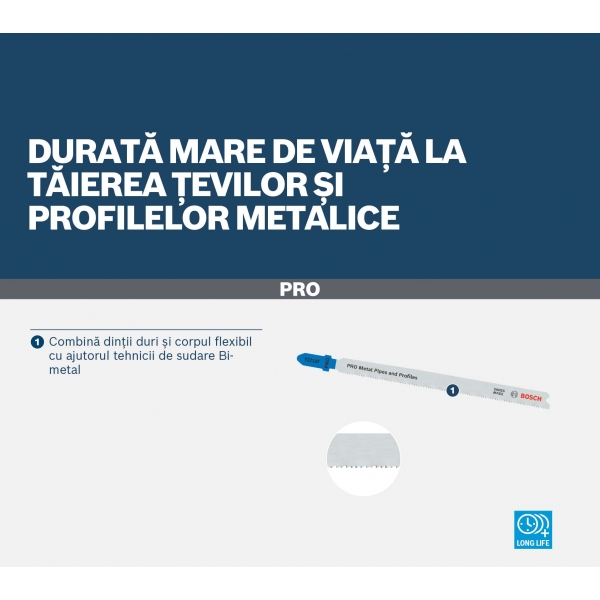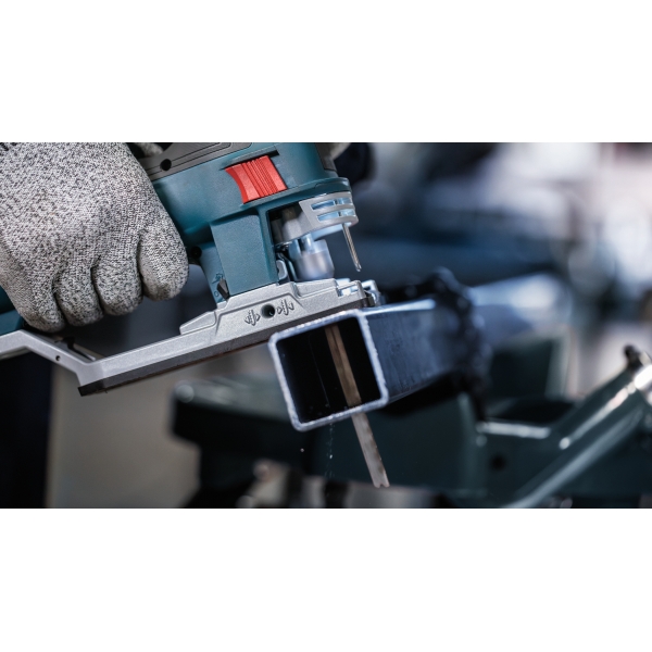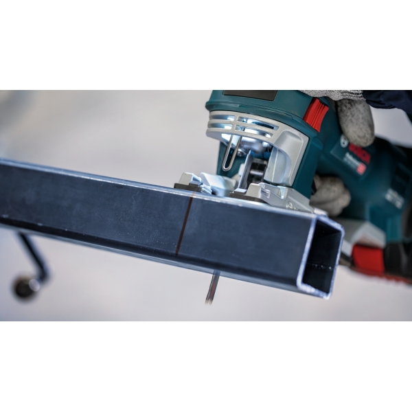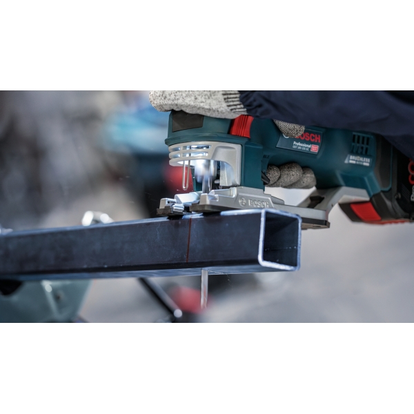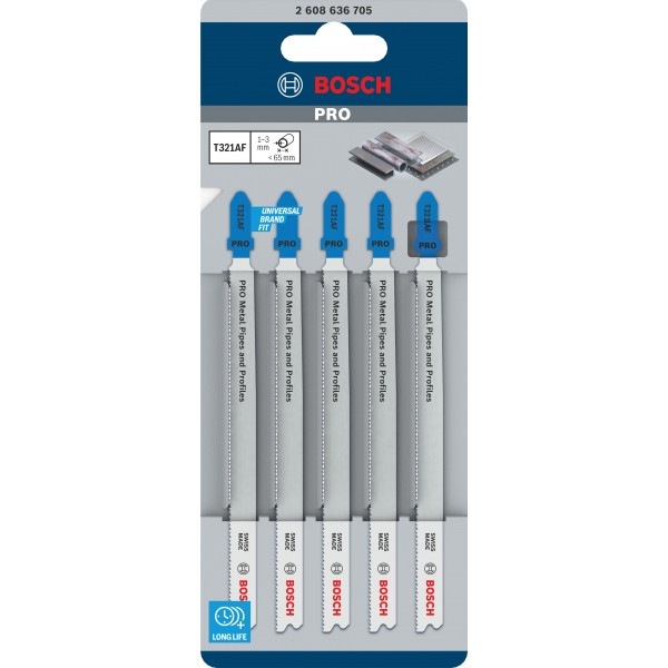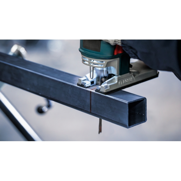 La hoja de sierra de calar PRO para tubos y perfiles metálicos T321AF está fabricada en bimetal: cuenta con una banda de dientes de acero de alta velocidad (HSS) unidos a un cuerpo de acero de alto carbono (HCS). Esto le confiere durabilidad y la dureza necesaria para cortar tubos y perfiles metálicos con paredes de hasta 3 mm de espesor. El cuerpo cónico, el perfil delgado y los dientes robustos, fresados y ondulados de la hoja garantizan un corte suave. La longitud extendida de la hoja permite cortar tubos y perfiles con un diámetro de hasta 65 mm.