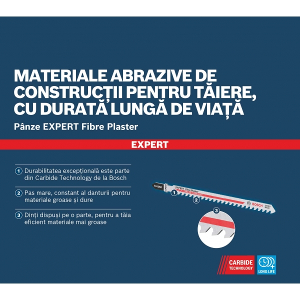 Los materiales resistentes requieren una hoja de sierra de calar resistente, pero que corte bien. Las hojas desgastadas no sirven, por lo que la durabilidad y la calidad van de la mano con la EXPERT Fibre Plaster. Sus dientes de carburo cortan los materiales abrasivos más resistentes, como placas de fibrocemento, placas de yeso y plásticos reforzados con fibra de vidrio. Y la lista continúa, para una máxima productividad.