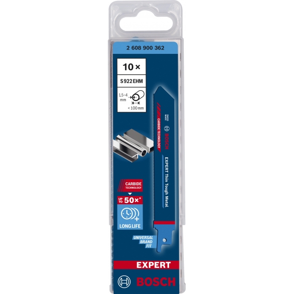 Ideal para trabajadores del metal, fontaneros, instaladores y renovadores, la hoja de sierra alternativa Bosch EXPERT Thin Tough Metal no solo realiza trabajos que antes eran casi imposibles, sino que también ofrece una vida útil excepcional.