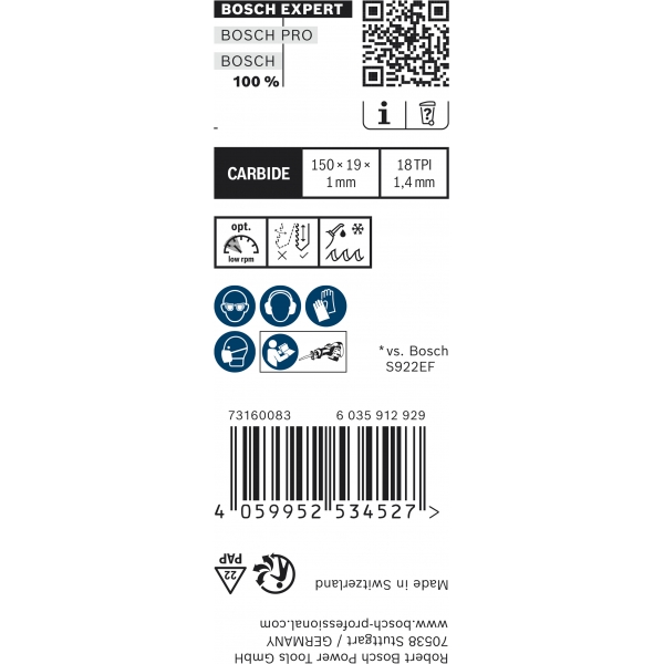 Hasta 50 veces más durabilidad que una hoja de sierra Bosch S922EF en materiales duros