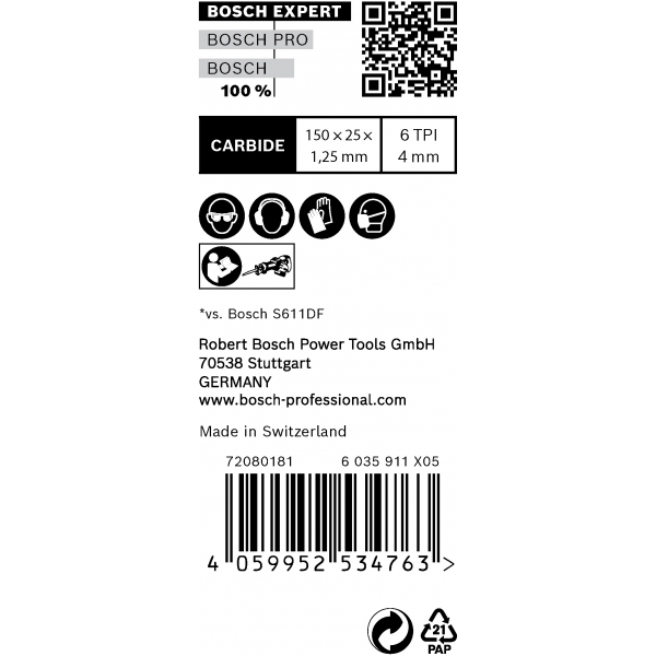 Hasta 50 veces más durabilidad que una hoja de sierra Bosch S611DF en materiales duros