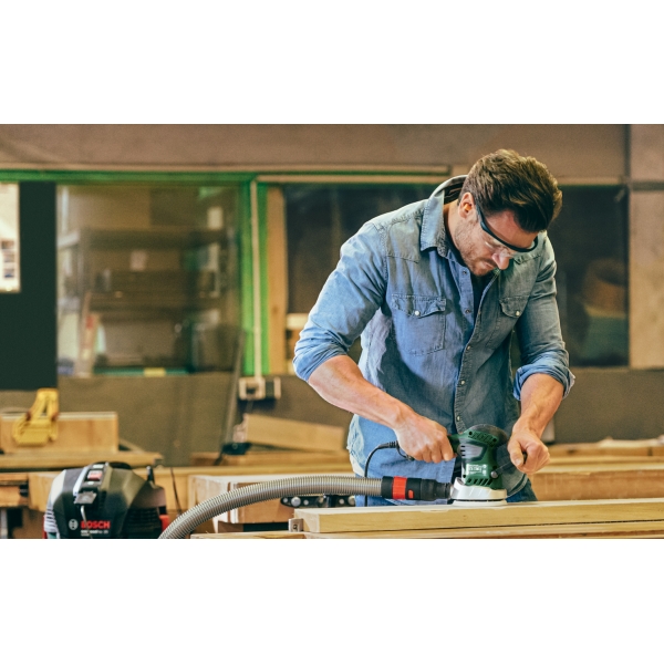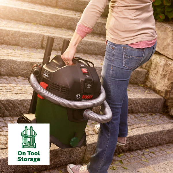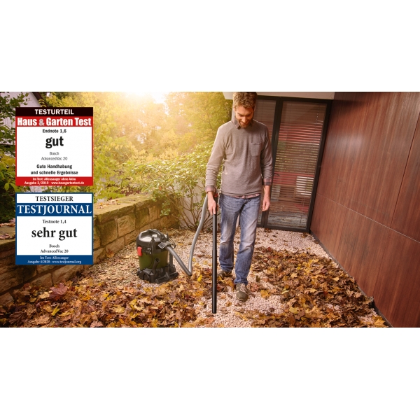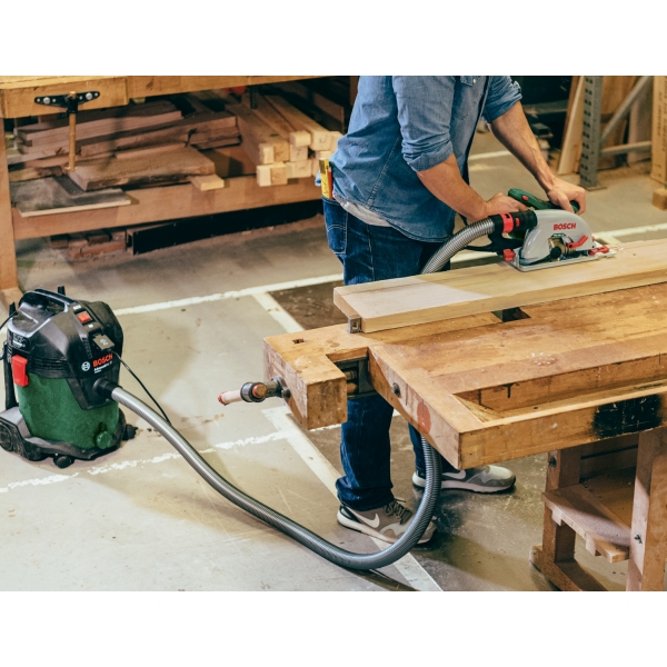 inglésLa aspiradora Bosch AdvancedVac 20 se enciende y apaga automáticamente cuando se utiliza una herramienta eléctrica.