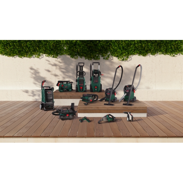 | Juego de entrega | Boquilla de piso Insertos de pincel Inserción de borde de goma Boquilla para articulaciones 2 tubos de succión, cada uno de 0,5 m Adaptador de succión Manguera de 2,2 m, antiestática manejar Bolsa de filtro en papel filtro prefiltro |