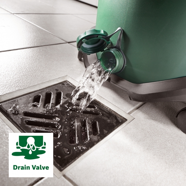 Fácil drenaje de grandes cantidades de agua gracias a la válvula de drenaje.
