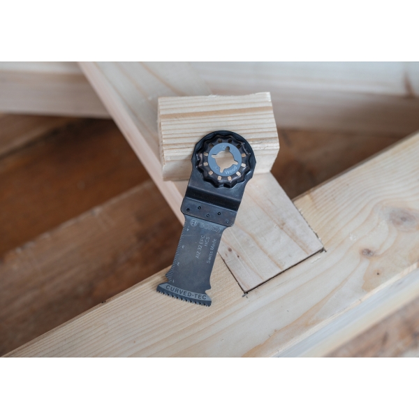 La hoja de sierra de inmersión AIZ 32 EPC es un accesorio multifuncional duradero para profesionales de diversos oficios que necesitan realizar cortes de inmersión limpios y precisos en muebles de madera blanda.