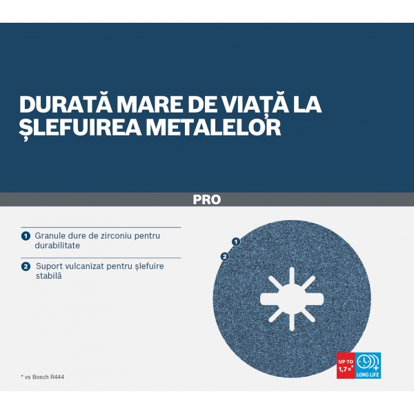 Dura hasta 1,7 veces más que un disco de fibra Bosch R444