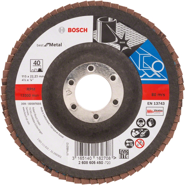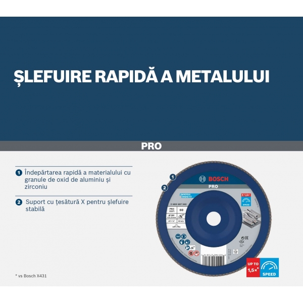 El disco de láminas PRO X571 cuenta con un soporte de tejido X para un lijado estable. La avanzada fusión de granos de óxido de aluminio y circonio garantiza una eliminación de material muy rápida y hace que este disco de láminas sea eficaz, incluso en acero templado.