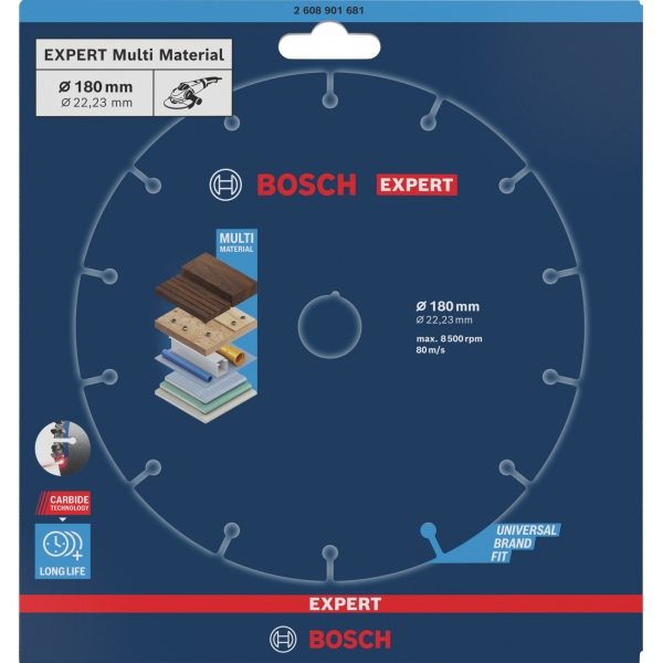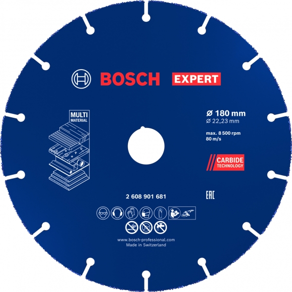 El disco multiusos EXPERT de carburo utiliza granos afilados de carburo para cortar diversos materiales con extrema eficiencia. El grano está unido por láser a un cuerpo de acero para una unión muy fuerte, lo que proporciona un disco de corte seguro y fiable que mantiene una velocidad y profundidad constantes durante una larga vida útil.
