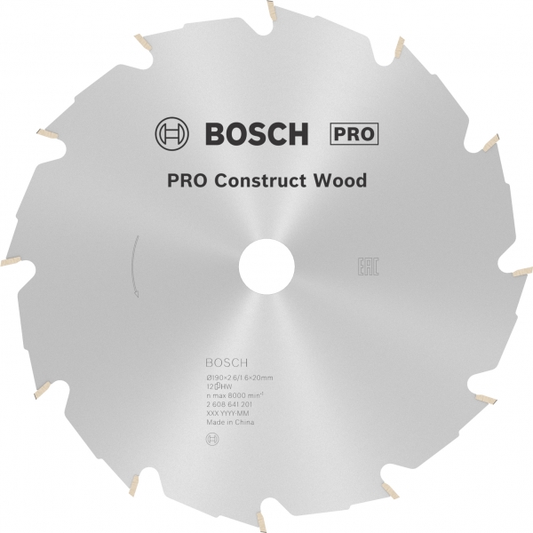 Bosch - Construct Wood - Hoja de sierra circular,madera con clavos, 190x20/16x2.6mm, 12 dientes