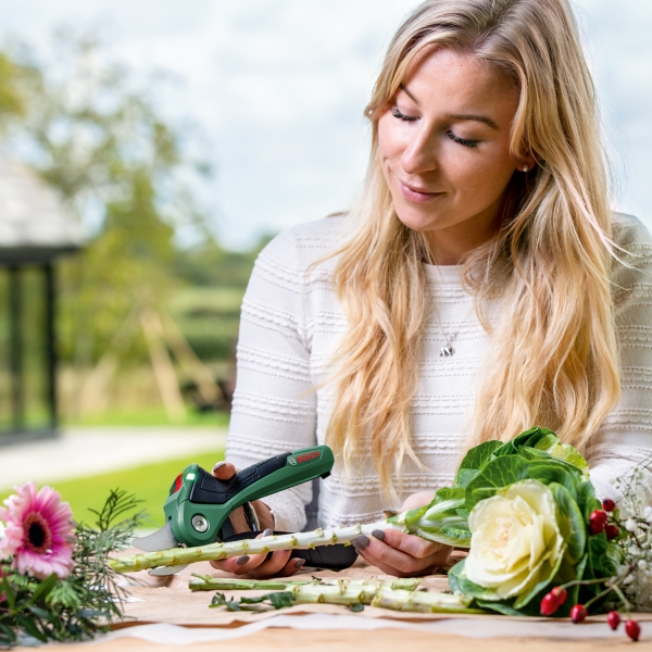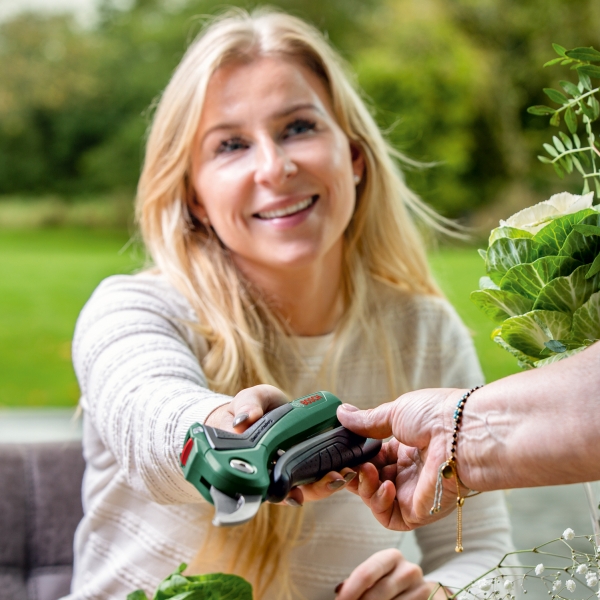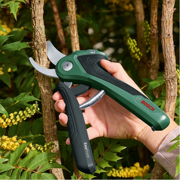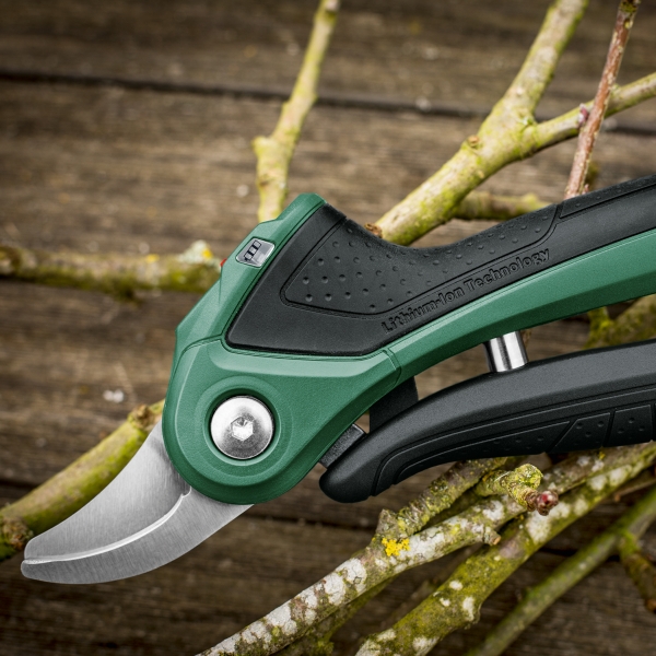 Fácil e intuitivo de usar como una tijera de jardín manual.