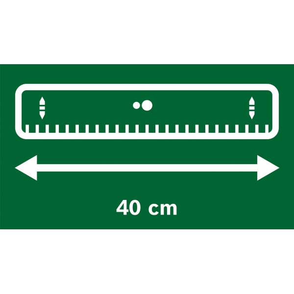 Información adicional | Batería: 2 x 1,5 V LR6 (AA) Precisión a 0/90/180/270 grados: 0,1 grados Duración de la batería: 20 h Dimensiones (LxAnxAl): 400x32x64 mm Peso: 0,46 kg |