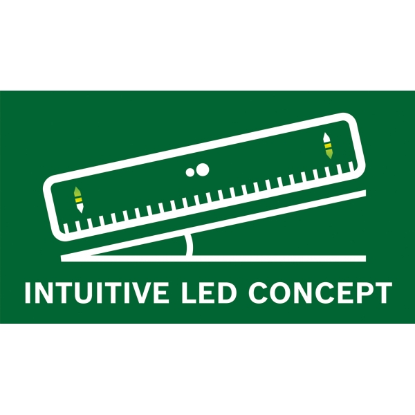 Nivel de burbuja de aire único con flechas LED innovadoras, fiables e intuitivas.