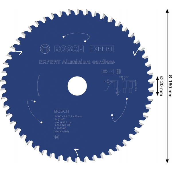 inglésHoja de sierra circular inalámbrica EXPERT de aluminio, 160 x 1,8/1,2 x 20 mm, T54