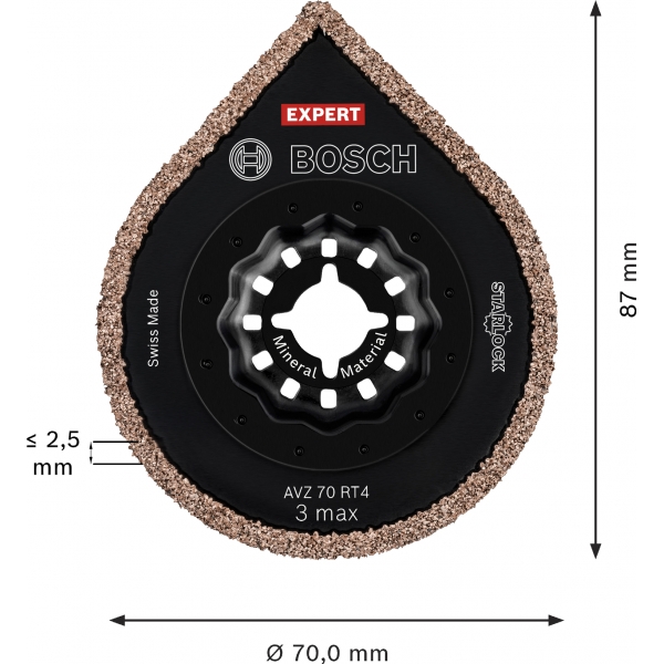 Esta es la única sierra oscilante multifunción que necesita para trabajar con baldosas cerámicas: un diseño aparentemente sencillo que le facilitará el trabajo y le garantizará la máxima eficiencia. Con la sierra multifunción Bosch EXPERT AVZ 70 RT4 3 max, siempre tendrá a mano el accesorio Starlock perfecto.