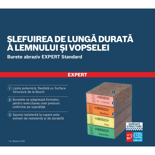 inglésDurabilidad hasta 5 veces mayor que la lija Bosch C420.