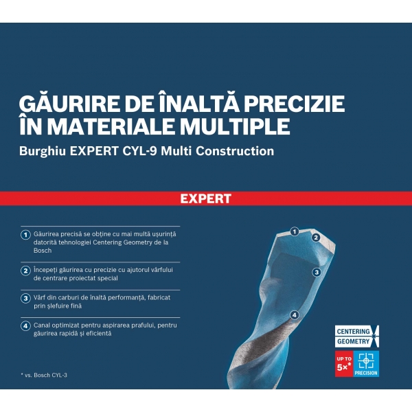 Precisión hasta 5 veces más duradera en comparación con la broca CYL-3 de Bosch