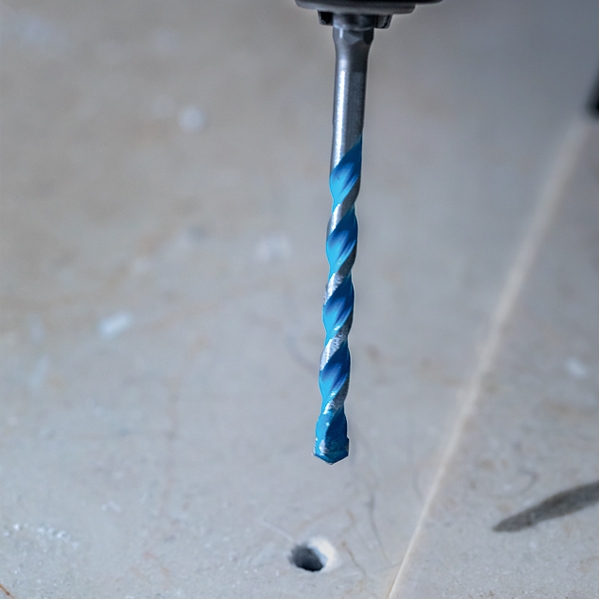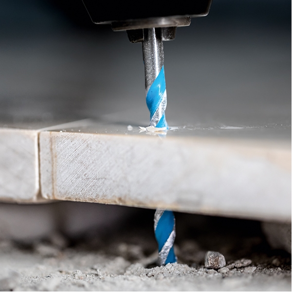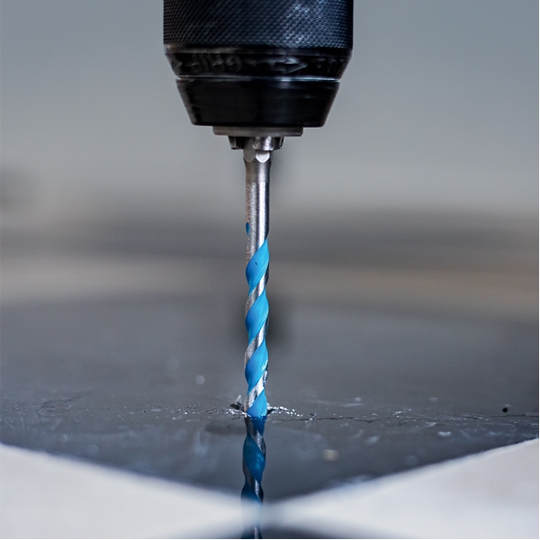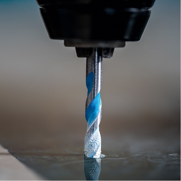 Esta broca altamente flexible puede perforar con precisión materiales duros como el granito sin resbalar gracias a su punta afilada y diseño de geometría avanzada.