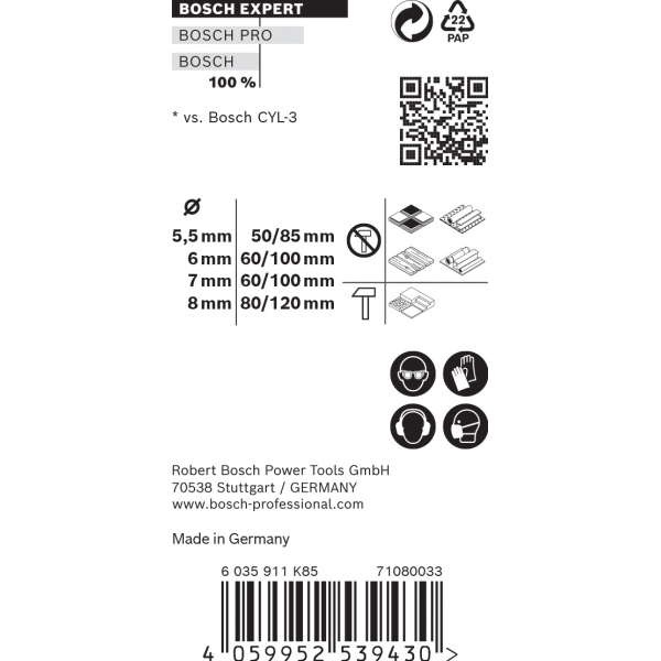 La broca de vástago cilíndrico Bosch EXPERT CYL-9 Multi Construction es la única broca que siempre debe estar en su caja de herramientas: nunca se quedará atascado durante un trabajo y no perderá tiempo buscando la broca adecuada.